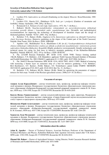 6. Бербеков В. Н., Бакуев Ж. Х., Гаглоева Л. Ч. Интенсивное садоводство на склонах Центральной части Северного Кавказа. Нальчик: “Принт Центр”, 2016. 146 с. EDN: XBDGQF
