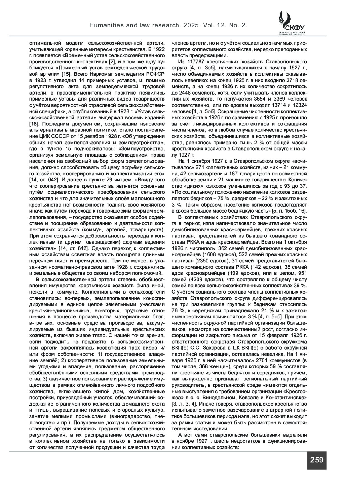 12. Панкова-Козочкина Т. В., Скорик А. П. Социально-экономическая обстановка в Кубанском округе Северо-Кавказского края в середине 1920-х гг.: хозяйственные структуры, государственная политика, казачество и иные группы населения // Российская государственность в судьбах народов Кавказа - XIII. Материалы региональной научно-практической конференции. Пятигорск, 24 ноября 2023 г. Пятигорск: ПГУ, 2023. С. 224-240.