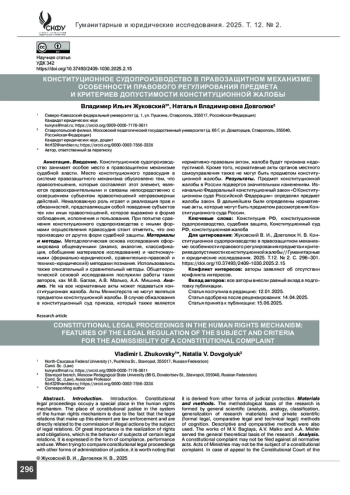 Материалы и методы. В исследовании автор применяет системный и диалектический методы анализа, а также частные методы исследования: логический, исторический, социологический, сравнительно-правовой и другие.