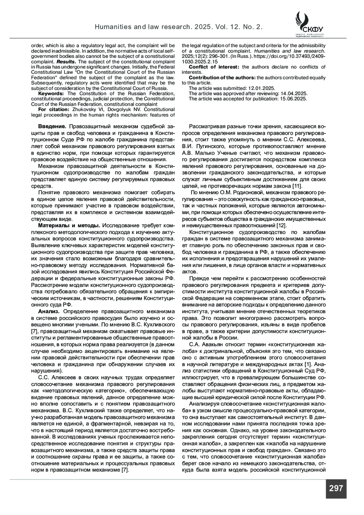 7. Кухливсий В. С. Конституционная жалоба как элемент правозащитного механизма в Российской Федерации и иных государствах-членах СНГ: автореф... канд. юрид. наук. М., 2016. 26 с.