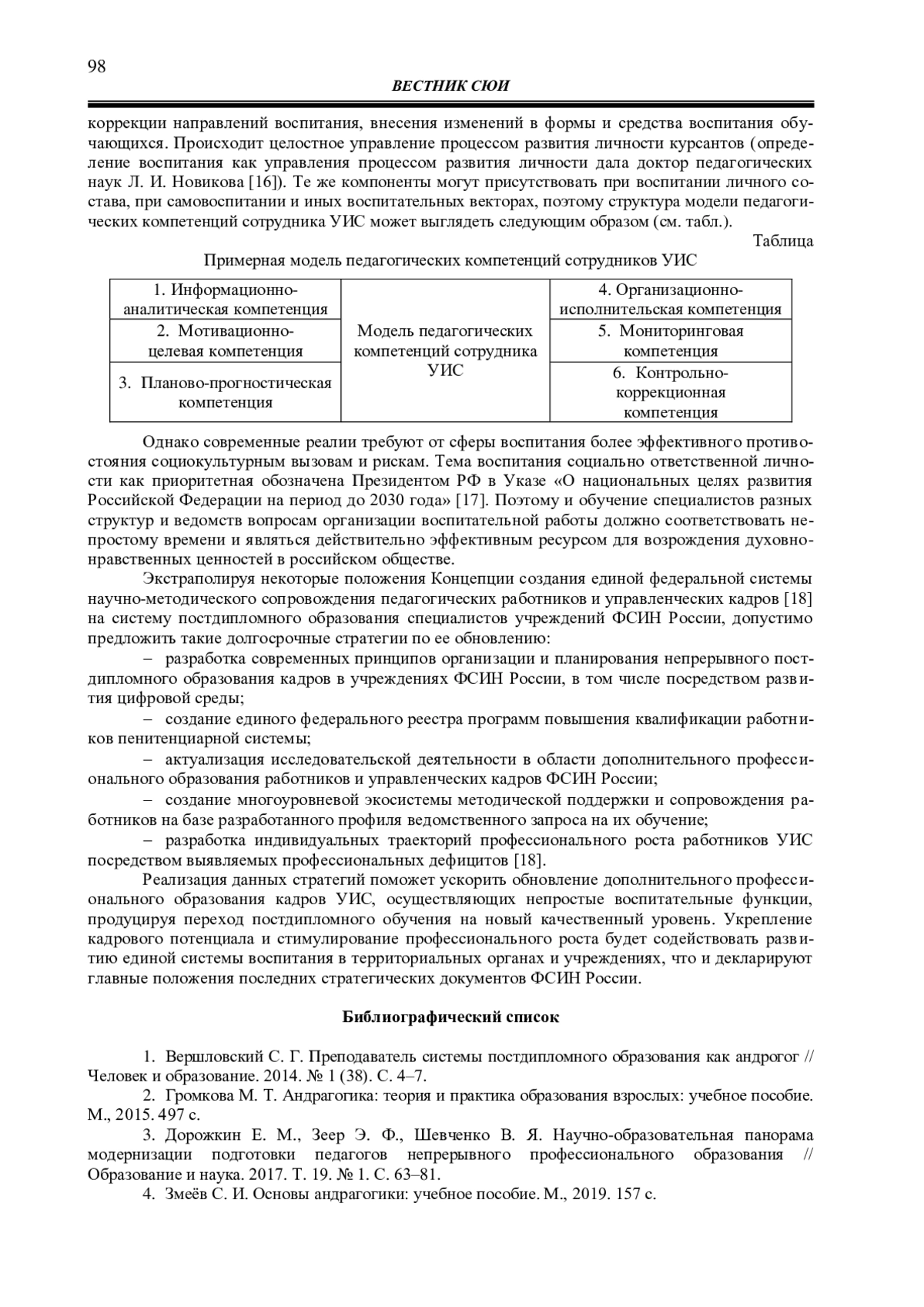 4. Змеёв С. И. Основы андрагогики: учебное пособие. М., 2019. 157 с.