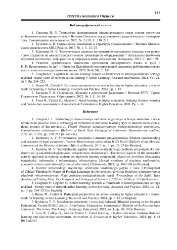 7. Бычкова Т. В. Смешанное обучение в российской федерации // Вестник РГГУ. Серия: Психология. Педагогика. Образование. 2022. №. 3. С. 10-19. EDN: FFZJZT