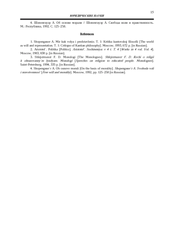 4. Шопенгауэр А. Об основе морали // Шопенгауэр А. Свобода воли и нравственность. М.: Республика, 1992. С. 125-258.