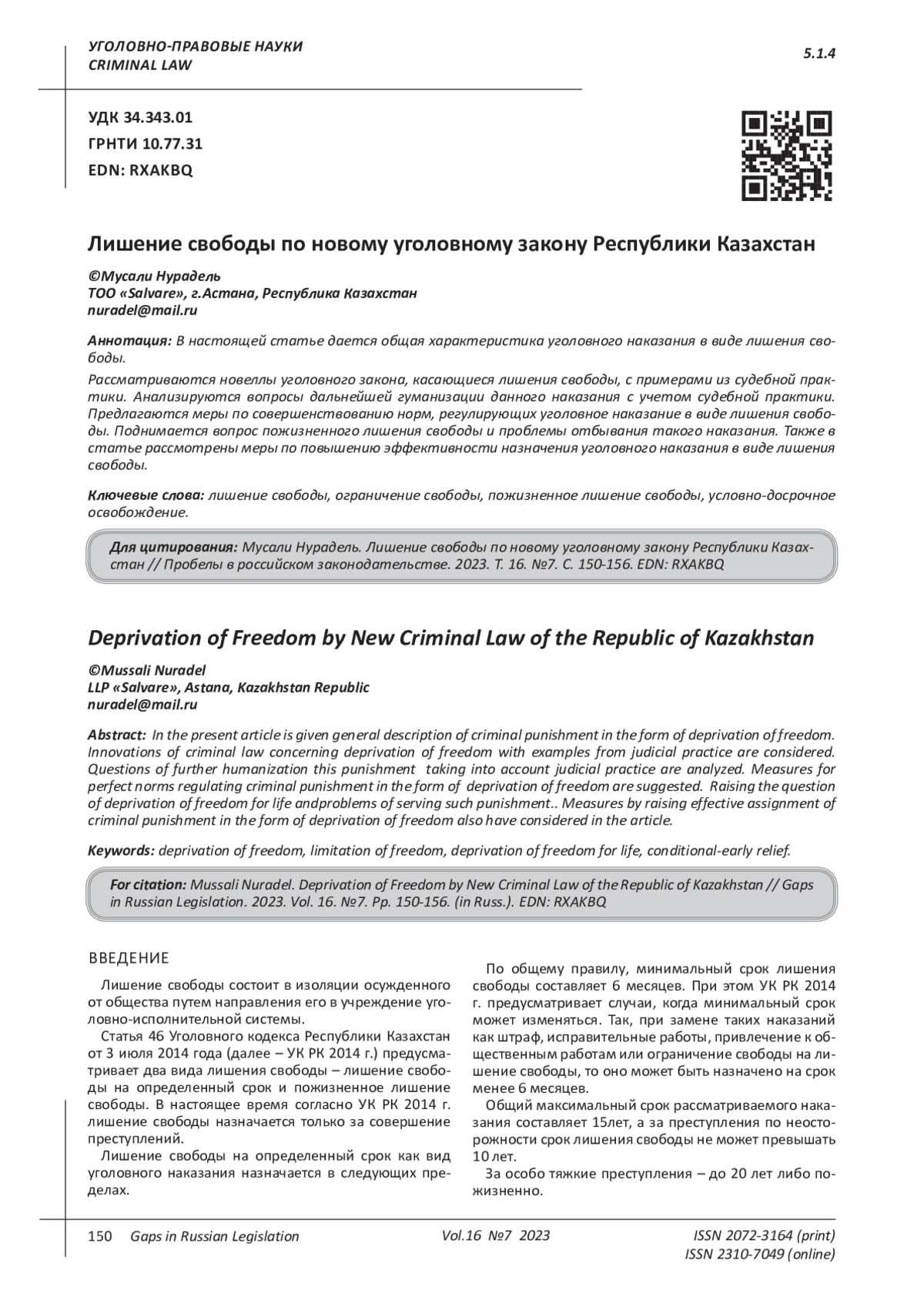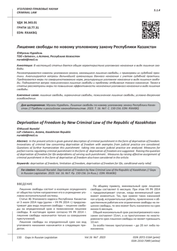 Baidauletova Zh. Deprivation of freedom // Law newspaper, February 5, 2021. №10.