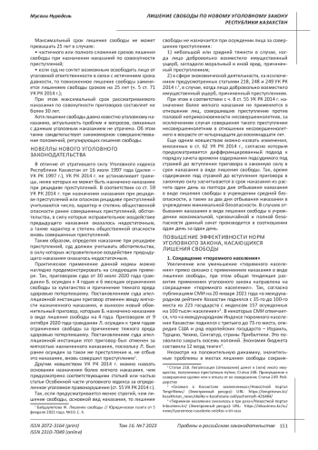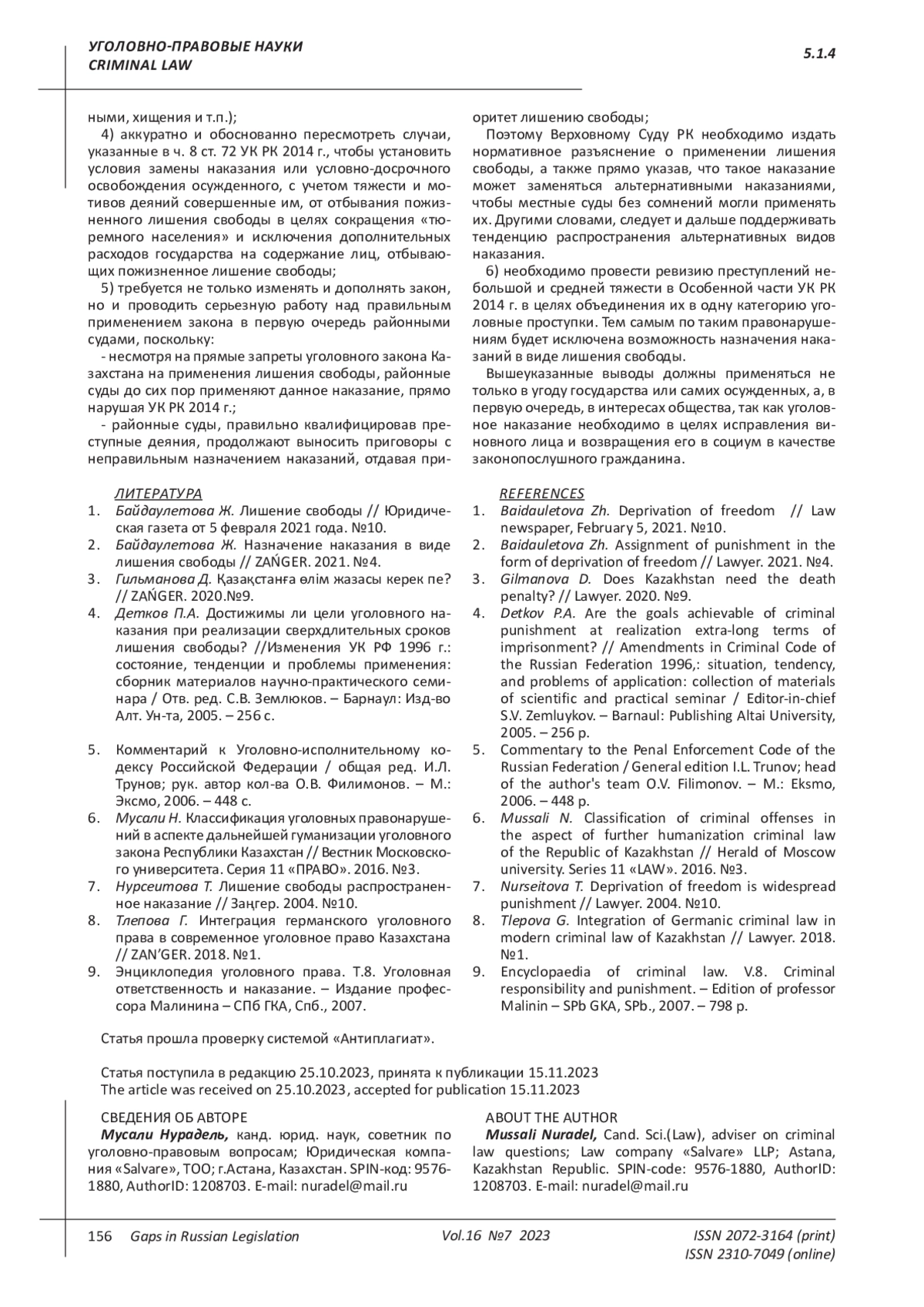 2. Байдаулетова Ж. Назначение наказания в виде лишения свободы // ZAŃGER. 2021. №4.