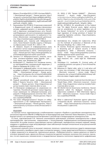 Ключевые фразы: киберпреступность, киберсреда, киберпространство, компьютерные преступления, международное сотрудничество, ИНФОРМАЦИОННАЯ ИНФРАСТРУКТУРА, криптобиржа, ЦИФРОВОЙ РУБЛЬ