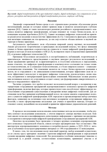 Ландшафт современной бизнес-среды и его стремительное развитие обусловлены рядом мегатенденций, каждая из которых меняет правила игры и является катализатором глубоких перемен [8;9]. Одним из таких катализаторов развития российского агропромышленного комплекса является цифровая трансформация, которая изменяет не только бизнес-модели, но и концепцию ведения агробизнеса [8;10;12]. Однако потенциал цифровых технологий на практике реализуется медленно и недостаточно эффективно [6;11]. Совокупность факторов, позитивно или негативно влияющих на эти процессы, до сих пор остается «белым пятном» в научной литературе и бизнес-практиках.