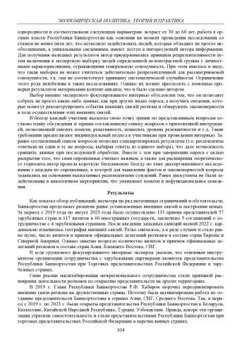 В статье на материалах авторских исследований, проведенных с помощью группового фокусированного интервью и статистического анализа, выделяется ведущая тенденция развития внешних связей Республики Башкортостан с зарубежными партнерами – переориентация на взаимодействие с регионами стран Центральной и Малой Азии, Ближнего и Дальнего Востока, расширение несырьевого неэнергетического экспорта