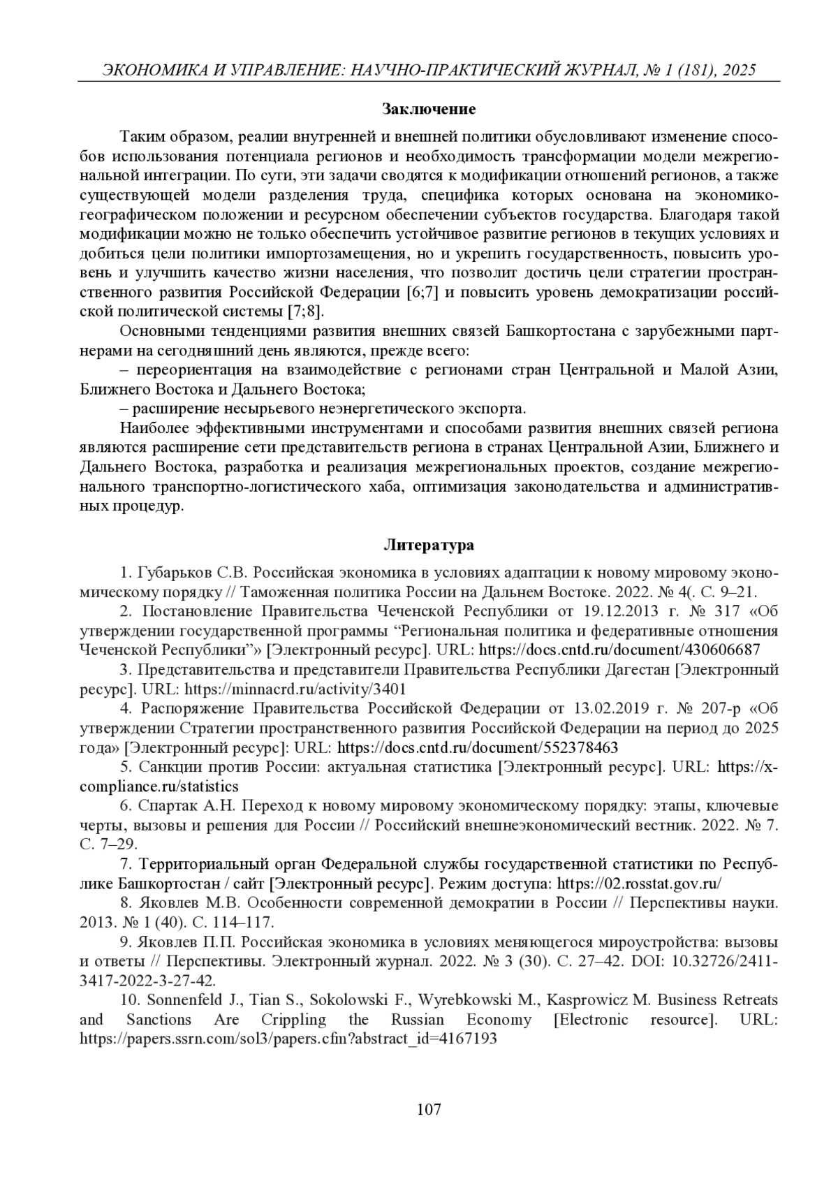 ЖЕЛНОВА А. В. ТЕНДЕНЦИИ РАЗВИТИЯ ВНЕШНИХ СВЯЗЕЙ РЕСПУБЛИКИ БАШКОРТОСТАН С ЗАРУБЕЖНЫМИ ПАРТНЕРАМИ В УСЛОВИЯХ САНКЦИОННЫХ ОГРАНИЧЕНИЙ // ЭКОНОМИКА И УПРАВЛЕНИЕ: НАУЧНО-ПРАКТИЧЕСКИЙ ЖУРНАЛ. 2025. № 1 (181)