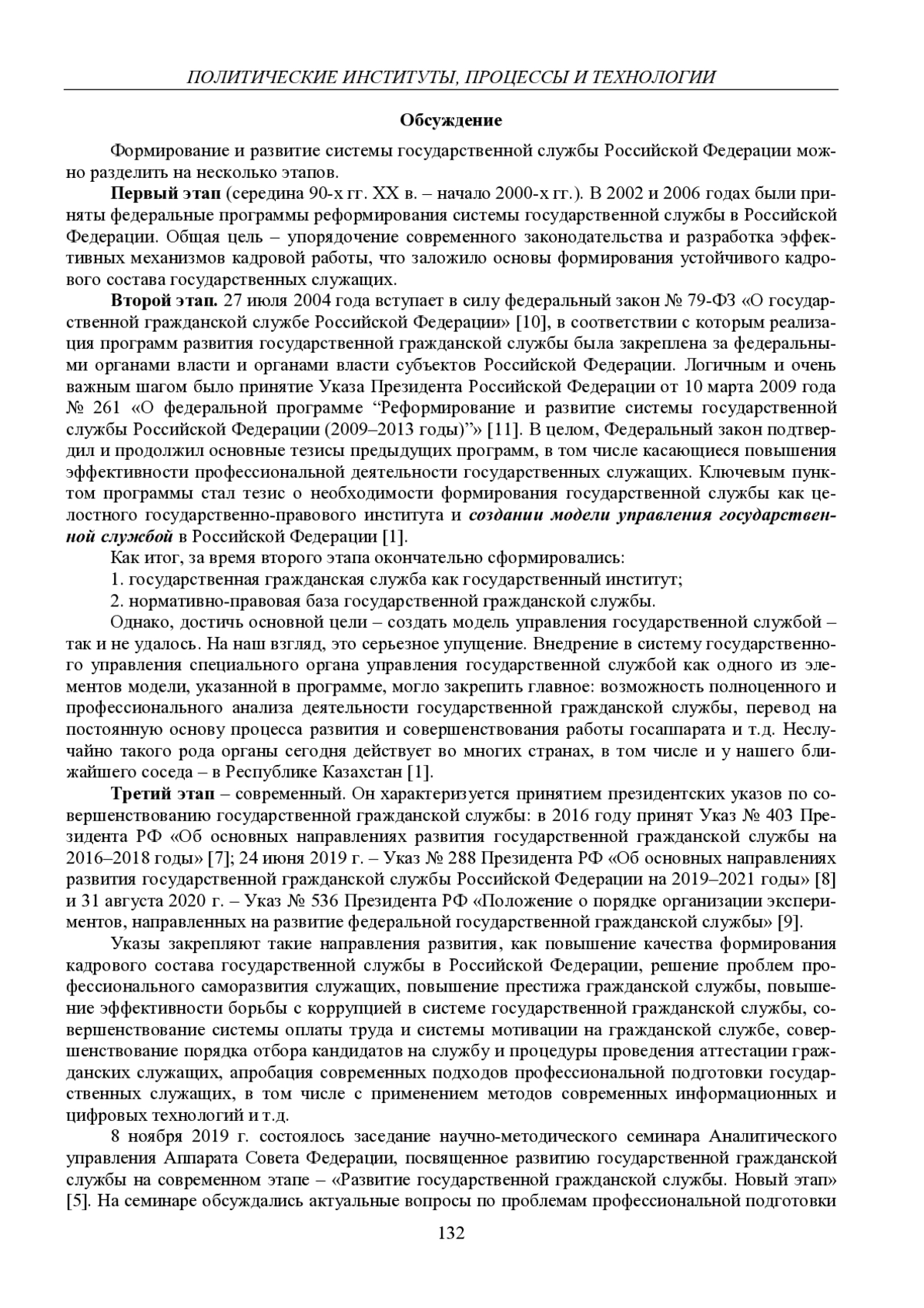 9. Указ Президента Российской Федерации от 31.08.2020 г. № 536 “Об утверждении Положения о порядке организации экспериментов, направленных на развитие федеральной государственной гражданской службы” [Электронный ресурс]. URL: http://www.kremlin.ru/acts/bank/45851.