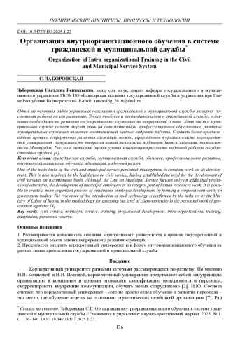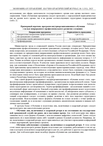 Статья: ОРГАНИЗАЦИЯ ВНУТРИОРГАНИЗАЦИОННОГО ОБУЧЕНИЯ В СИСТЕМЕ ГРАЖДАНСКОЙ И МУНИЦИПАЛЬНОЙ СЛУЖБЫ (2025)
