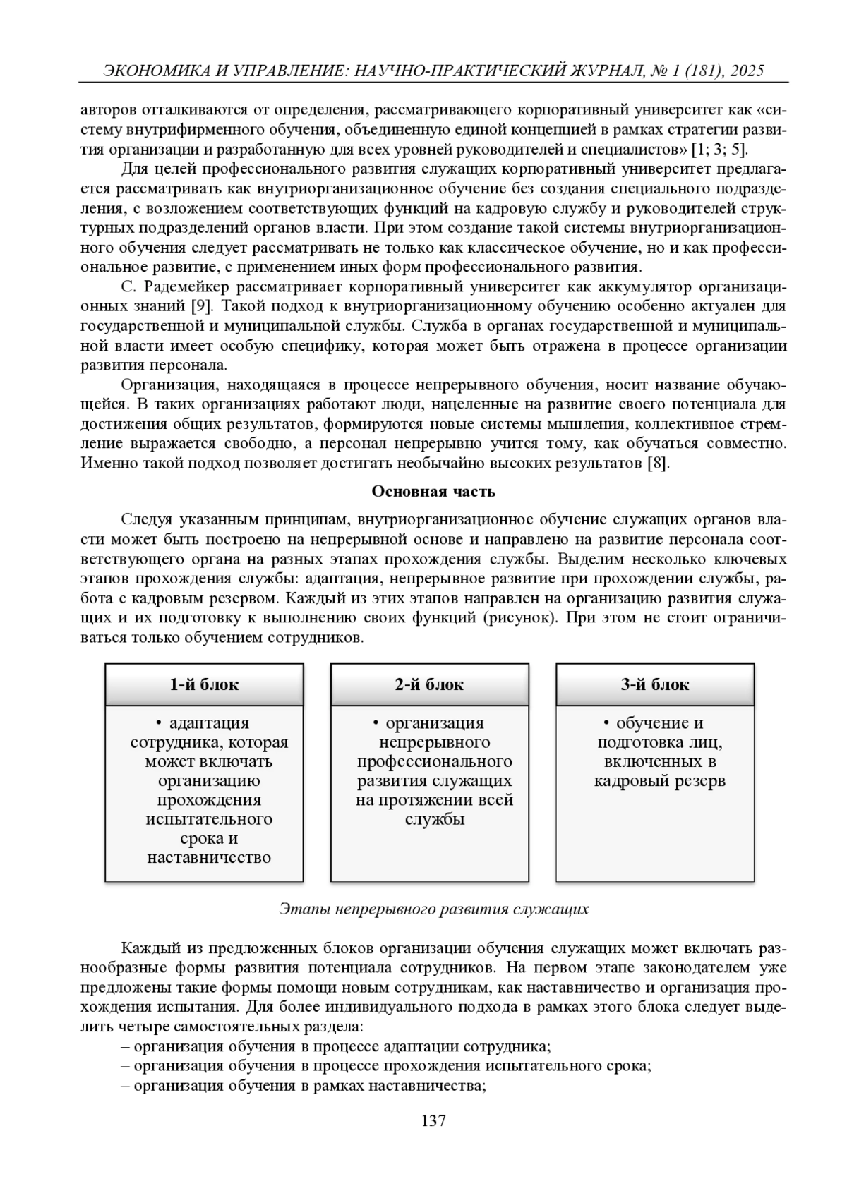 ЗАБОРОВСКАЯ С. Г. ОРГАНИЗАЦИЯ ВНУТРИОРГАНИЗАЦИОННОГО ОБУЧЕНИЯ В СИСТЕМЕ ГРАЖДАНСКОЙ И МУНИЦИПАЛЬНОЙ СЛУЖБЫ // ЭКОНОМИКА И УПРАВЛЕНИЕ: НАУЧНО-ПРАКТИЧЕСКИЙ ЖУРНАЛ. 2025. № 1 (181)