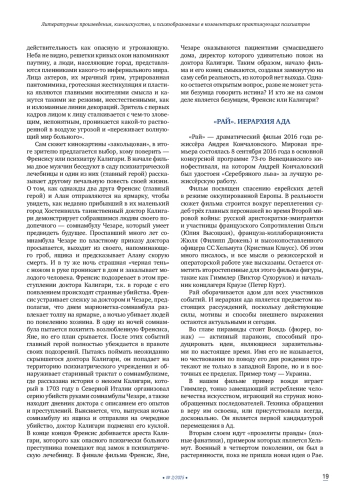 Одним из замыслов нашей образовательной работы являлась попытка показать, как некоторые клинические категории и понятия могут быть воплощены в литературных произведениях и киноискусстве, как искусство, работающее прежде всего с человеческими чувствами, переживаниями, эмоциями, воссоздает иногда с удивительной правдивостью особенности психопатологии. Другим стремлением было желание представить читателям нашего журнала собственно движение клинического мышления практикующего психиатра на примере анализа фильмов или литературных трудов, в которых герои страдают психическим расстройством. В частности, мы стремились продемонстрировать ту линию размышления, ту направленность интеллектуальной реакции, которая возникает в процессе формирования определенного диагностического суждения при оценке психопатологического феномена.