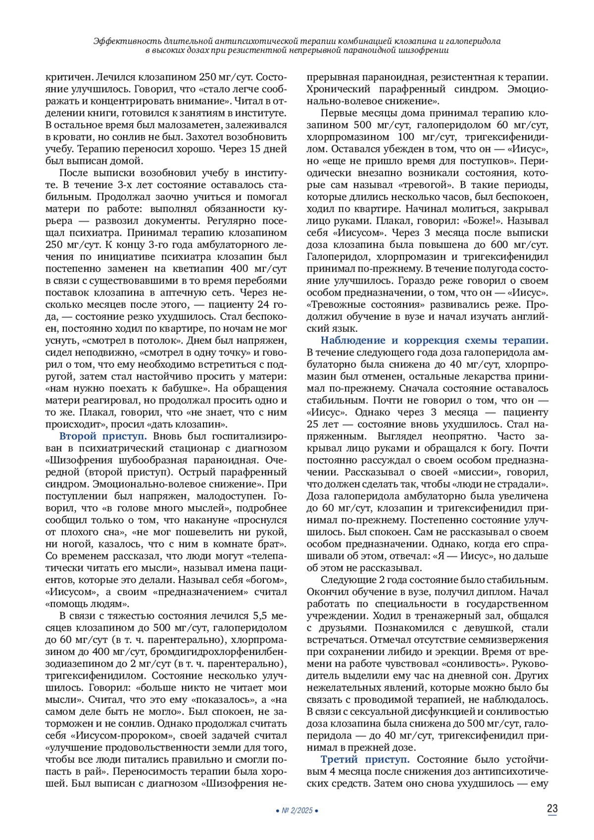 22. Moriarty S.E., Parhami P., Parikh J., Galicki L. Antipsychotic polypharmacy for treatment resistant schizoaffective disorder: A case report. Cureus.2025 Mar;17(3):e80204. DOI: 10.7759/cureus.80204