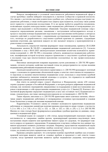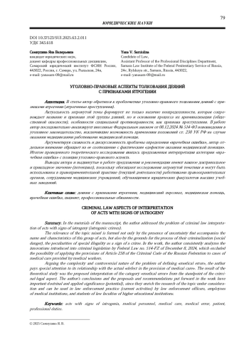 Статья: УГОЛОВНО-ПРАВОВЫЕ АСПЕКТЫ ТОЛКОВАНИЯ ДЕЯНИЙ С ПРИЗНАКАМИ ЯТРОГЕНИИ (2025)
