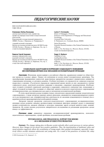 Статья: СОЦИАЛЬНАЯ АДАПТАЦИЯ И КОРРЕКЦИЯ СОЦИАЛЬНОГО ПОВЕДЕНИЯ НЕСОВЕРШЕННОЛЕТНИХ КАК МЕХАНИЗМ ИСПОЛНИТЕЛЬНОЙ ПРОБАЦИИ (2025)