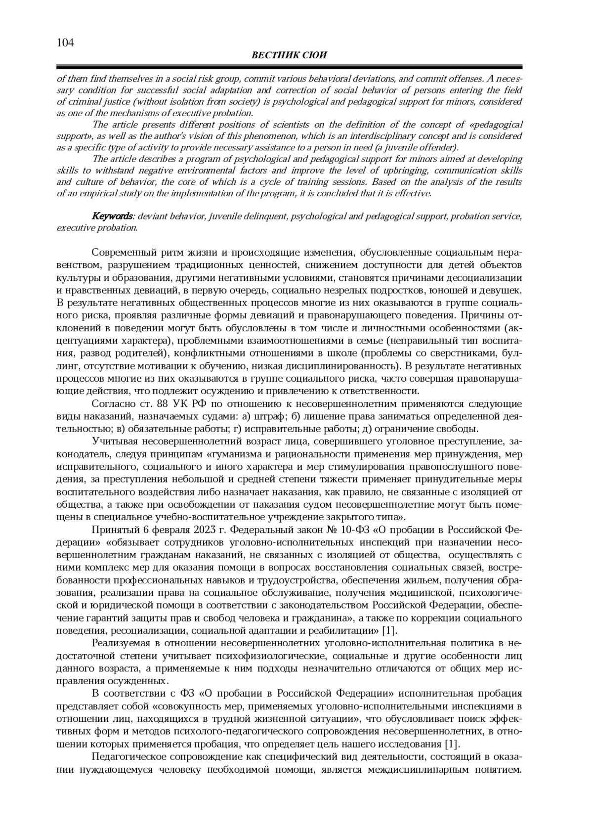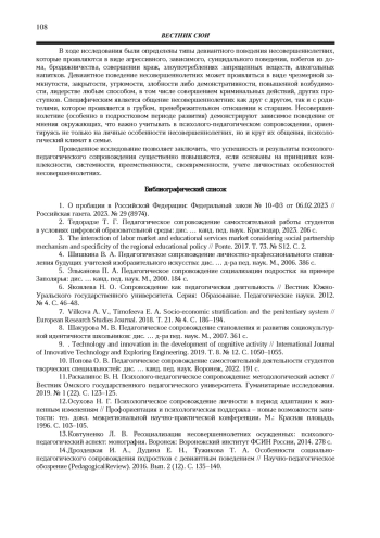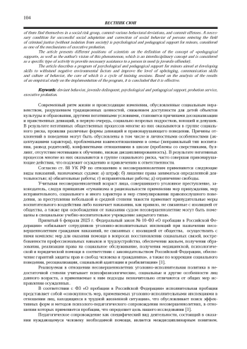 Ключевые фразы: ДЕВИАНТНОЕ ПОВЕДЕНИЕ, НЕСОВЕРШЕННОЛЕТНИЙ ПРАВОНАРУШИТЕЛЬ, ПСИХОЛОГО-ПЕДАГОГИЧЕСКОЕ СОПРОВОЖДЕНИЕ, служба пробации, исполнительная пробация