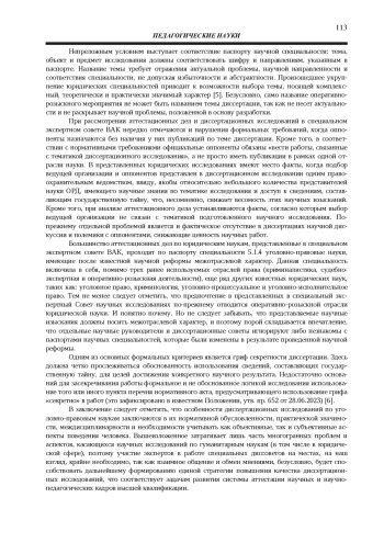 Так, автором отмечается, что при оценке научно-практических результатов диссертационных исследований по юридическим наукам важно учитывать произошедшее в 2022 г. распределение юридических наук по соответствующим номенклатурным единицам: это позволило расширить возможности исследователей по изучению проблем правового регулирования отдельных сфер общественной жизни во взаимосвязи самых разных отраслей права с использованием междисциплинарных и межотраслевых подходов, устранить барьеры между отраслями права и способствовать развитию совершенствования законодательства.