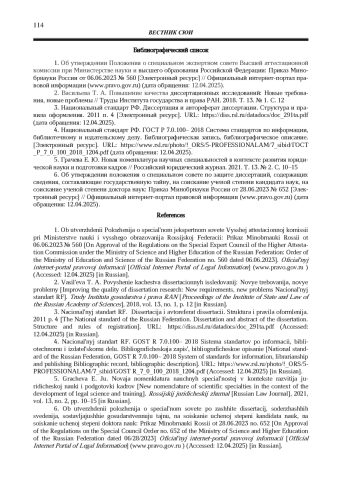 5. Грачева Е. Ю. Новая номенклатура научных специальностей в контексте развития юридической науки и подготовки кадров // Российский юридический журнал. 2021. Т. 13. № 2. С. 10-15.