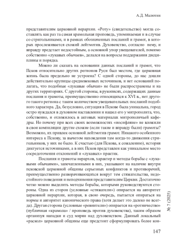 Псковская церковная организация выделяется в рамках истории Русской Православной Церкви. На Руси не было другой такой крупной земли, которая не имела бы собственного и обособленного церковного управления. В XIV в. политический конфликт между Псковом и Новгородом выходит на свой пик, Псков отделяется от Новгорода, но не отделяется его церковная организация. Данное противоречие особым образом отразилось на псковской церковной общине, породив многочисленные неканонические обычаи и проблемы церковного управления, которые, в свою очередь, породили религиозное движение «стригольников» и попытку самостоятельного учреждения автокефалии от Новгородского епископа. В рукописях «иосифлянского» происхождения до нас дошли многочисленные послания и грамоты церковных иерархов в город, где обозначались так называемые «лукавые обычаи» – прямые нарушения норм канонического права как со стороны духовенства, так и со стороны мирян. Подобные сведения в подробностях дошли до нас только в отношении Пскова. Анализ этих посланий и грамот позволяет увидеть последствия уникального устройства и положения псковской церковной общины, отраженные в церковной жизни города и зафиксированные в рамках неканонических практик и отклонений.