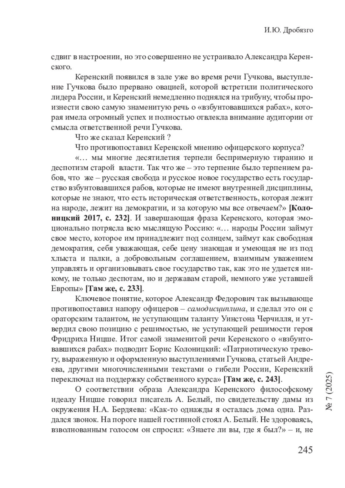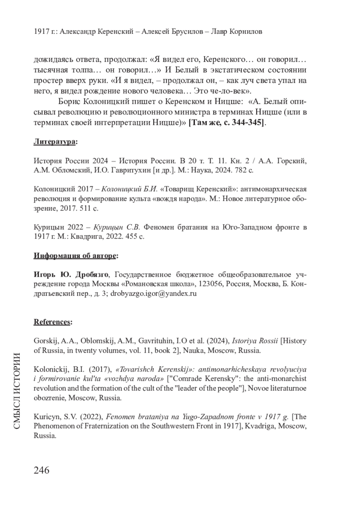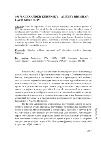 ДРОБЯЗГО И. Ю. 1917 Г.: АЛЕКСАНДР КЕРЕНСКИЙ – АЛЕКСЕЙ БРУСИЛОВ – ЛАВР КОРНИЛОВ // СМЫСЛ ИСТОРИИ. 2025. № 7