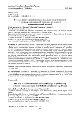 2. Копылов И. А., Скорых Л. Н., Ефимова Н. И. Мясность молодняка овец породы советский меринос и их помесей с австралийскими баранами // Овцы, козы, шерстяное дело. 2017. № 2. С. 26-27. EDN: YRRKZL