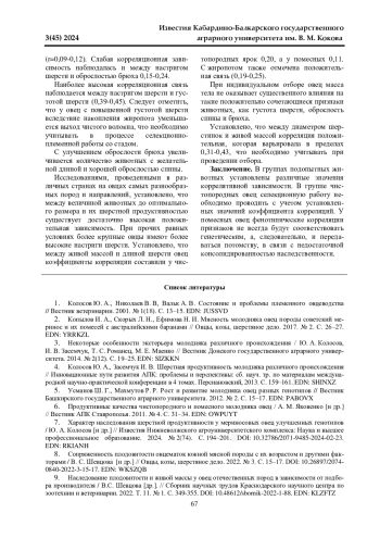 7. Характер наследования шерстной продуктивности у мериносовых овец улучшенных генотипов / Ю. А. Колосов [и др.] // Известия Нижневолжского агроуниверситетского комплекса: Наука и высшее профессиональное образование. 2024. № 2(74). С. 194-201. DOI: 10.32786/2071-9485-2024-02-23 EDN: RKIANH