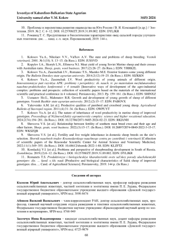 1. Колосов Ю. А., Николаев В. В, Вальк А. В. Состояние и проблемы племенного овцеводства // Вестник ветеринарии. 2001. № 1(18). С. 13-15. EDN: JUSSVD