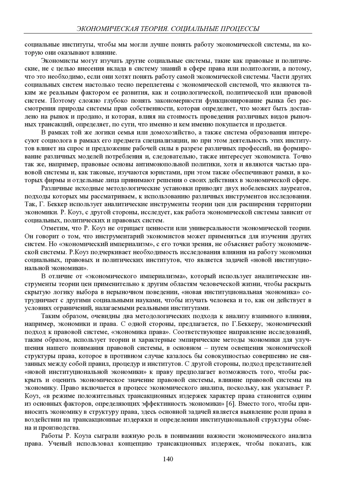 Ключевые фразы: рональд коуз, методология, новая институциональная экономика