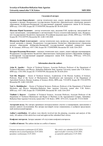 11. 	Батыров В. И., Болотоков А. Л., Ашабоков Х. Х. Закономерности изменения давления начала подъема иглы распылителя форсунок дизелей ЯМЗ // Актуальные направления научных исследований XXI века: теория и практика. 2015. Т. 3. № 4-1(15-1). С. 156-160. DOI: 10.12737/13912 EDN: UYRJYF