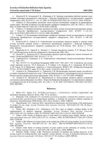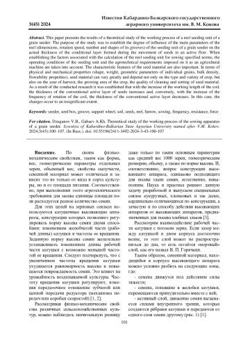 Статья: ТЕОРЕТИЧЕСКОЕ ИССЛЕДОВАНИЕ РАБОЧЕГО ПРОЦЕССА ВЫСЕВАЮЩЕГО АППАРАТА ЗЕРНОВОЙ СЕЯЛКИ (2024)