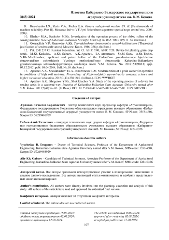 ДЗУГАНОВ В. Б., ГАБАЕВ А. Х. ТЕОРЕТИЧЕСКОЕ ИССЛЕДОВАНИЕ РАБОЧЕГО ПРОЦЕССА ВЫСЕВАЮЩЕГО АППАРАТА ЗЕРНОВОЙ СЕЯЛКИ // ИЗВЕСТИЯ КАБАРДИНО-БАЛКАРСКОГО ГОСУДАРСТВЕННОГО АГРАРНОГО УНИВЕРСИТЕТА ИМ. В. М. КОКОВА. 2024. № 3 (45)