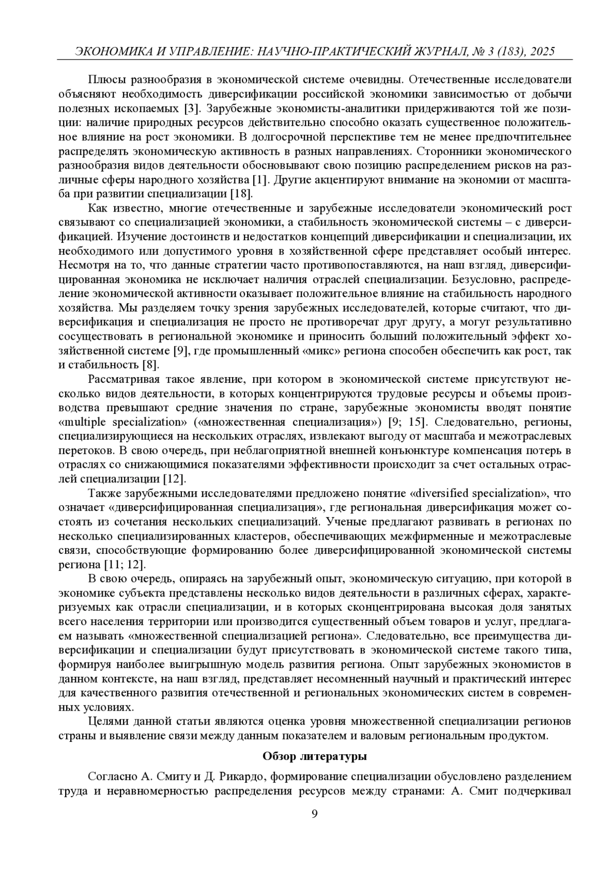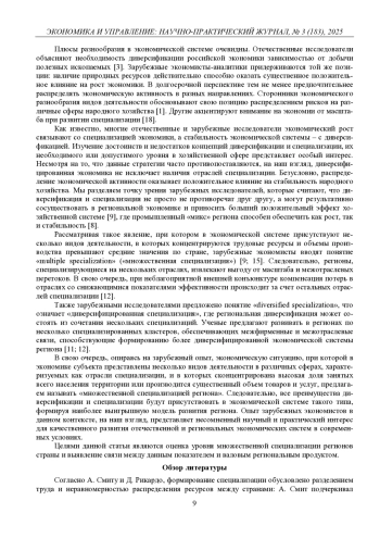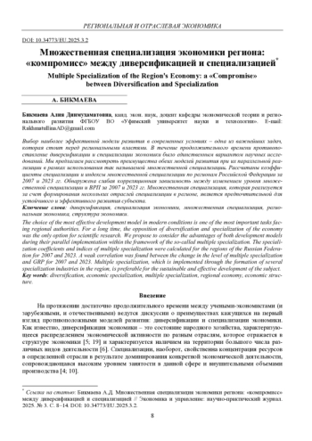 2. Бикмаева А.Д. Специализация экономики региона: теоретические и практические аспекты // Экономика и управление: научно-практический журнал. 2024. № 5(179). С. 74-79. DOI: 10.34773/EU.2024.5.12