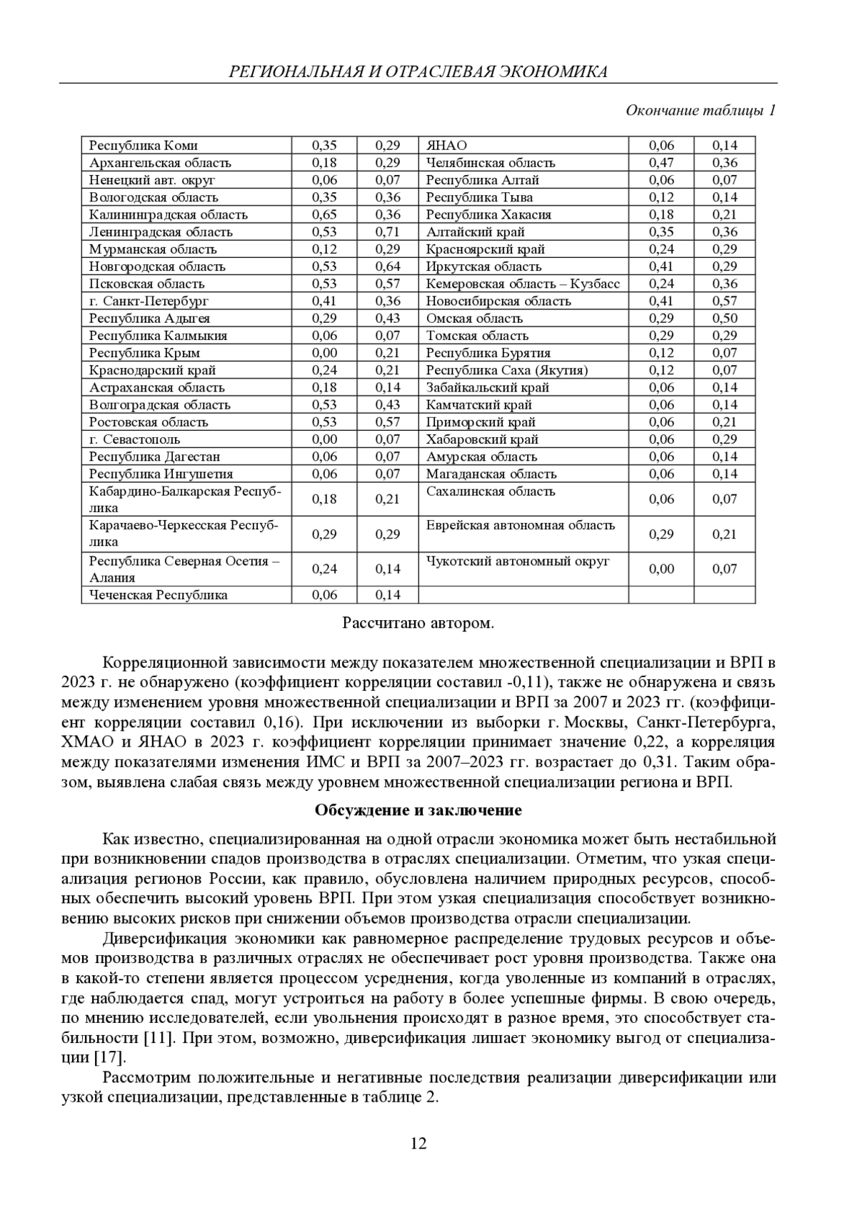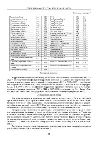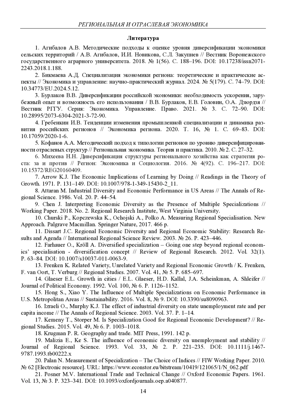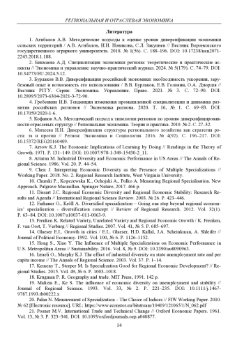 12. Farhauer O., Kröll A. Diversified specialization - Going one step beyond regional economics’ specialisation - diversification concept // Review of Regional Research. 2012. Vol. 32(1). P. 63-84. DOI: 10.1007/s10037-011-0063-9