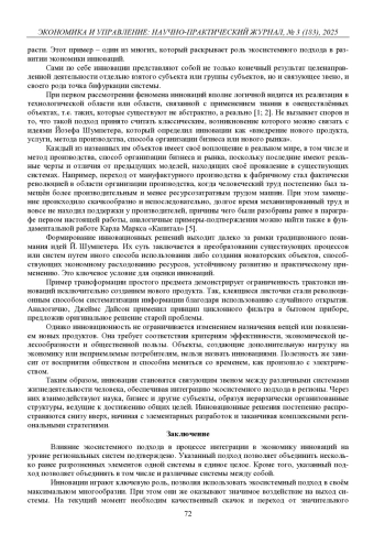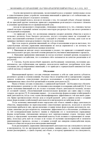 Управление как процесс есть неотъемлемая часть любой прикладной сферы человеческой деятельности, что обусловливает необходимость постоянного совершенствования применяемых в этом процессе методов и инструментов. При этом само по себе управление представляется многогранным и сложным конструктом, предполагающим наличие объекта как реально существующего в материальном мире, так и абстрактного, лишь описанного в некоторых терминах. Одной из таких абстракций представляются инновации как явление и мыслительный процесс как способ их воспроизведения.