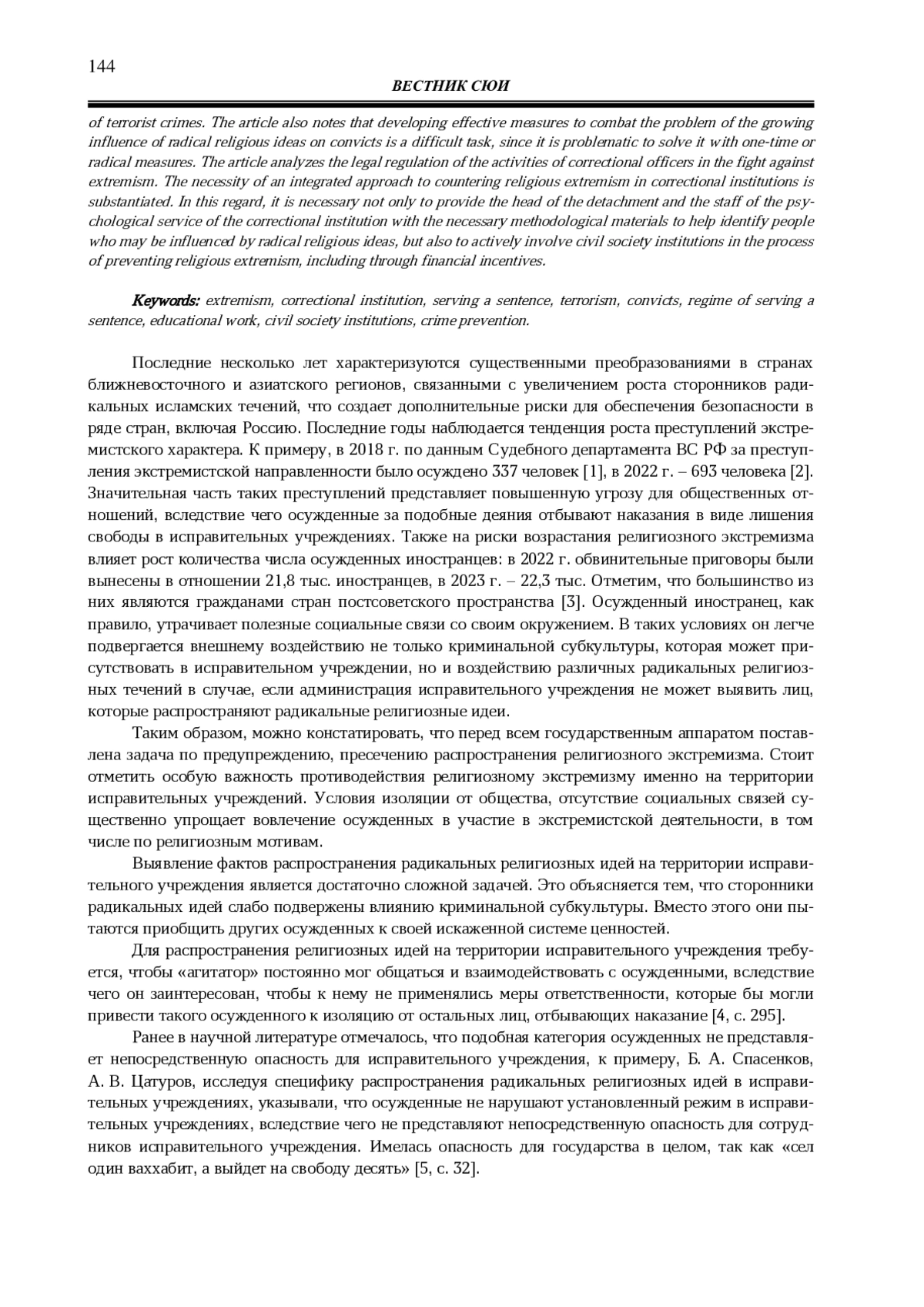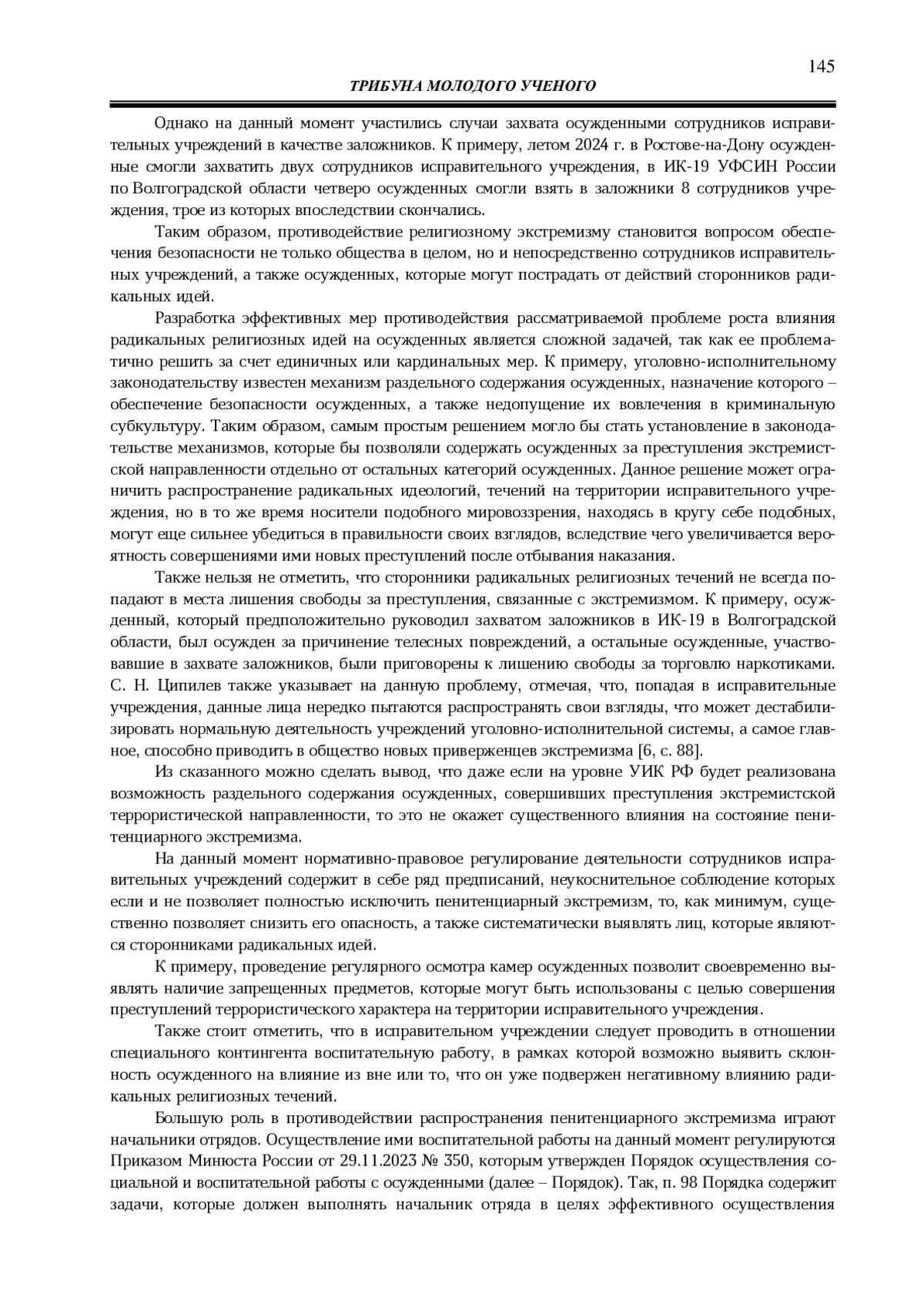 6. Ципилев С. Н. К вопросу о распространении экстремизма в исправительных учреждениях // Пенитенциарная наука. 2018. №. 1 (41). С. 87-92. EDN: YTXWZD