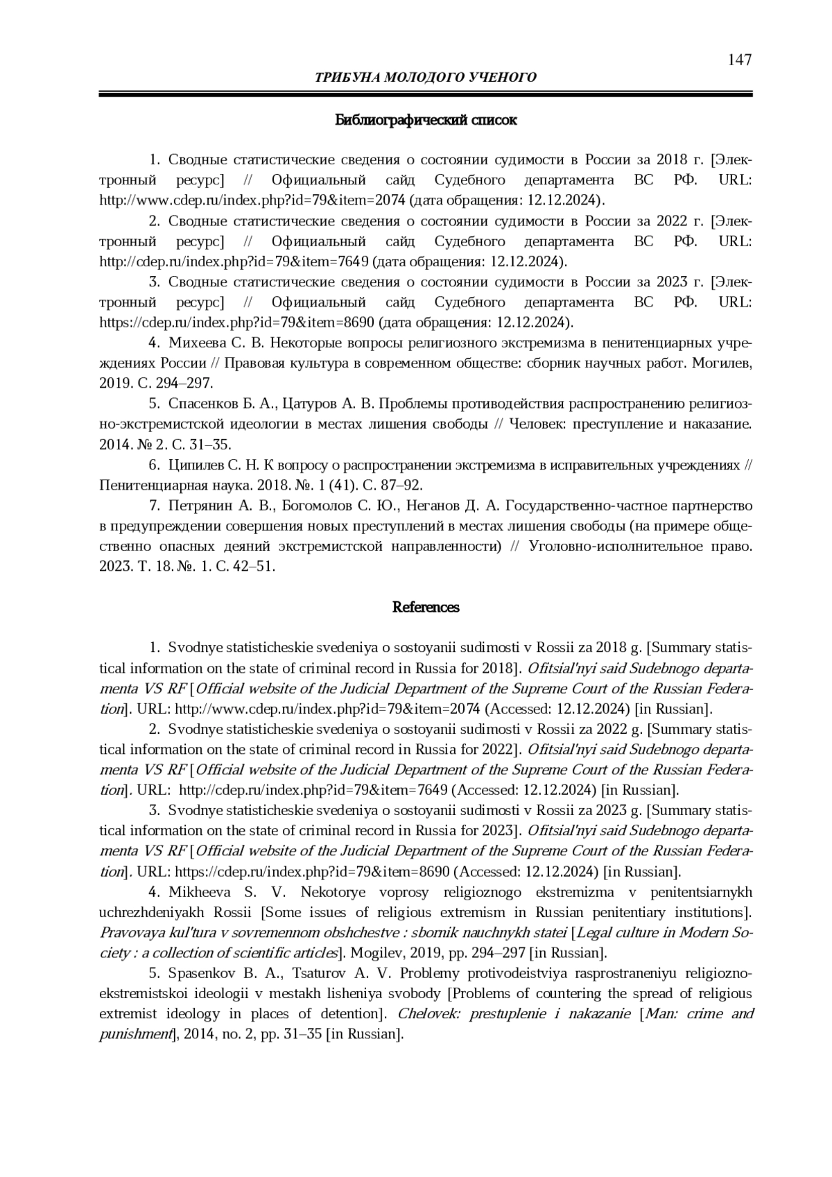 3. Сводные статистические сведения о состоянии судимости в России за 2023 г. [Электронный ресурс] // Официальный сайд Судебного департамента ВС РФ. URL: https://cdep.ru/index.php?id=79&item=8690 (дата обращения: 12.12.2024).