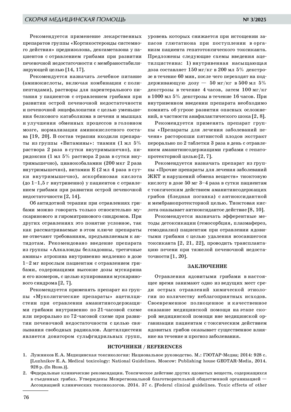 2. 	Федеральные клинические рекомендации. Токсическое действие других ядовитых веществ, содержащихся в съеденных грибах. Утверждены Межрегиональной благотворительной общественной организацией - Ассоциацией клинических токсикологов. 2014. 37 с.