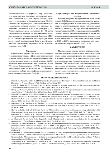 Статья: ОСОБЕННОСТИ ОКАЗАНИЯ НЕОТЛОЖНОЙ ПОМОЩИ ДЕТЯМ И ПОДРОСТКАМ С ТЯЖЕЛЫМ ТЕЧЕНИЕМ БРОНХИАЛЬНОЙ АСТМЫ НА ДОГОСПИТАЛЬНОМ ЭТАПЕ. ОБЗОР (2025)