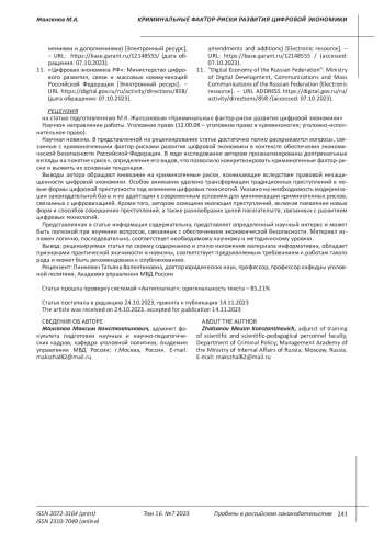 Pinkevich T. V., Smolyaninov E. S., Ishchuk Ya. G. Digital criminology: a textbook. Moscow, 2021. p. 24.