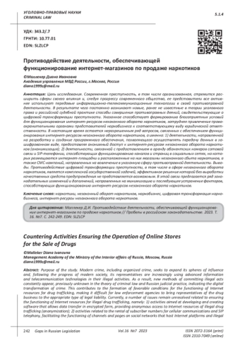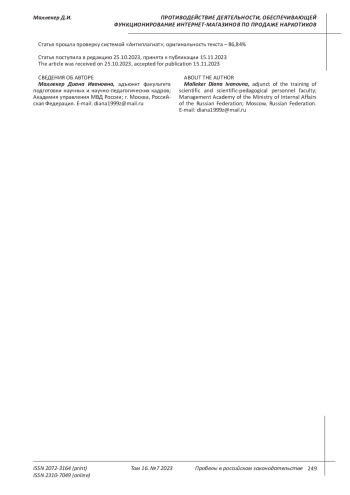 Статья: ПРОТИВОДЕЙСТВИЕ ДЕЯТЕЛЬНОСТИ, ОБЕСПЕЧИВАЮЩЕЙ ФУНКЦИОНИРОВАНИЕ ИНТЕРНЕТ-МАГАЗИНОВ ПО ПРОДАЖЕ НАРКОТИКОВ (2023)