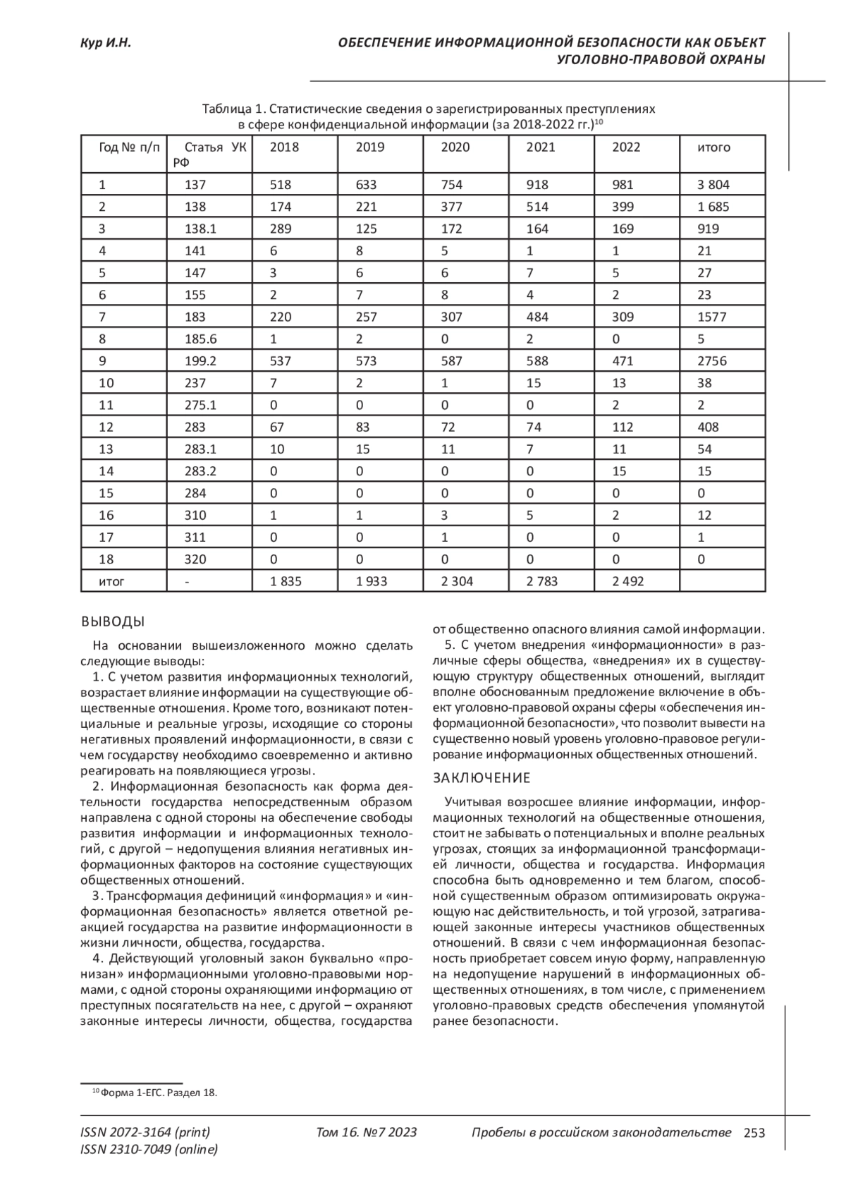 Statistical information of the Ministry of Internal Affairs of Russia on the state of crime (Form 1-EGS. Section 18).