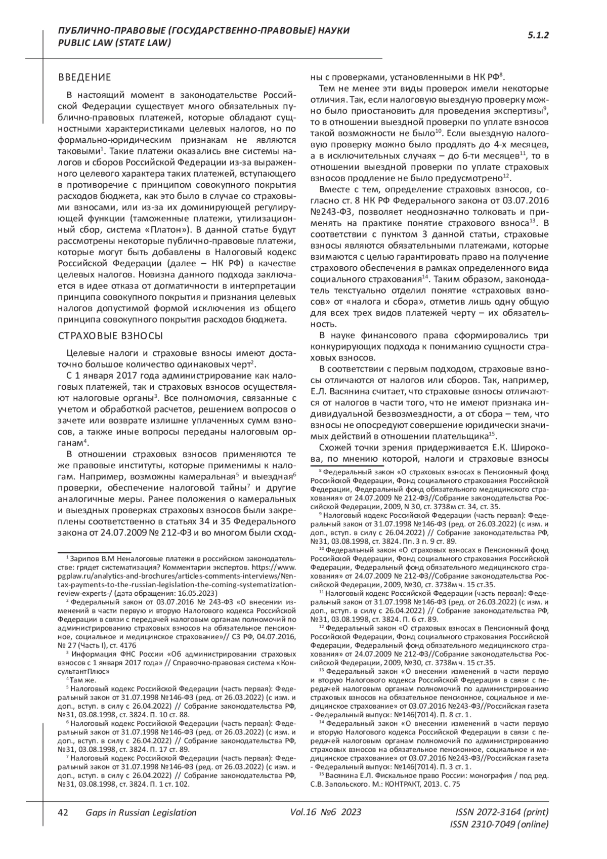 4. Гутарина О.В. Финансово-правовая природа обязательных социальных взносов // Финансовое право. 2013. № 8. С. 7. EDN: QZMNZD