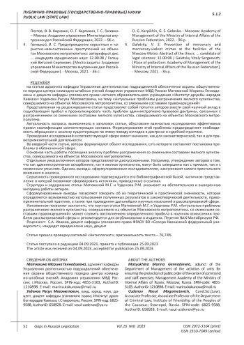 Galetsky, V. S. Prevention of mercenary and mercenary-violent crimes at the facilities of the Moscow Metro: Abstract of the thesis…. candidate of legal sciences: 12.00.08 / Galetsky Vitaly Sergeevich; [Place of protection: Academy of Management of the Ministry of Internal Affairs of the Russian Federation]. - Moscow, 2021. - 36 p. EDN: GWQIWB