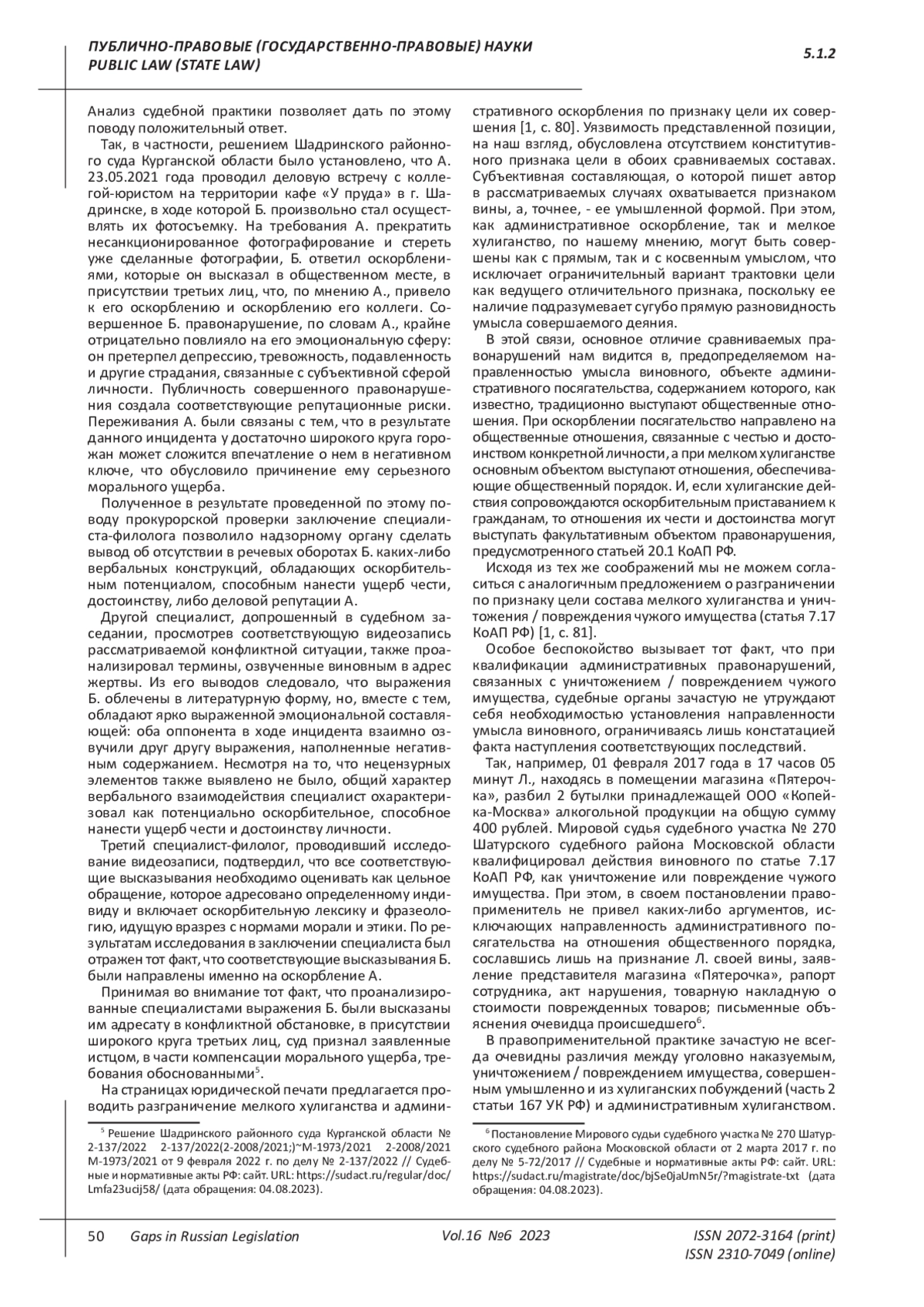 Smolyakov, A. I. Problematic issues of qualification of petty hooliganism / A. I. Smolyakov // Scientific Bulletin of the Oryol Law Institute of the Ministry of Internal Affairs of Russia named after V.V. Lukyanov. - 2018. - No. 1 (74). - P. 80-83.