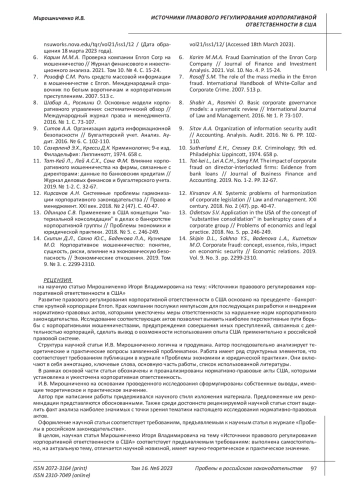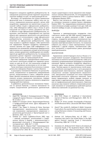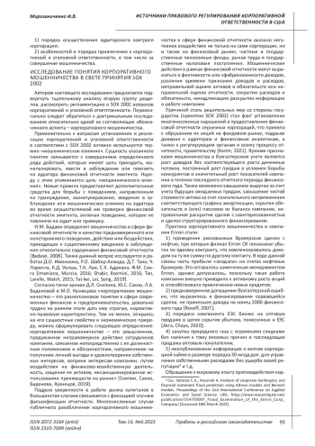 5. 	Имониана Дж.О., Мурсия Ф.Д.Р. Закономерности сходства корпоративных мошенничеств // Качественный отчет. 2016. № 1. С. 143-162. URL: https://nsuworks.nova.edu/tqr/vol21/iss1/12 / (Дата обращения 18 марта 2023 года).