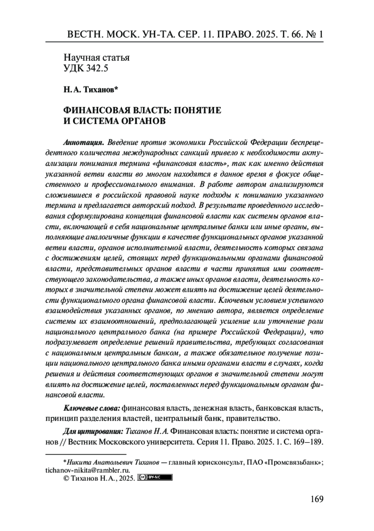 25. Тиханов Н. А. Механизм принятия антисанкционных указов Президента РФ: необходимость в чрезвычайных условиях? // Законодательство. 2024. № 8. С. 61-69.