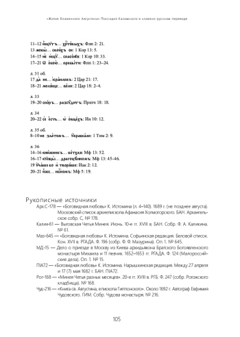 «Житие св. Августина» Поссидия Каламского открывает собой «Книгу св. Августина» — никогда не издававшийся памятник латинского влияния в русской литературе первой половины XVI в. Оно публикуется впервые, по основному списку около 1692 г. Евфимия Чудовского, восходящему к сборнику князя Андрея Курбского 1563–1564 гг. Разночтения приводятся по двум старообрядческим рукописям 10-х и 20‑х гг. XVIII в.