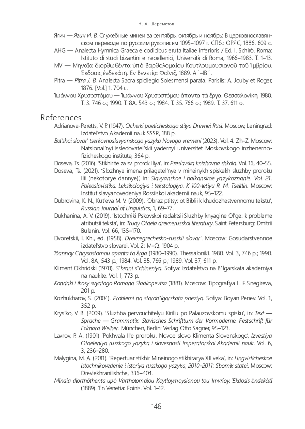 17. Малыгина М. А. Репертуар стихир Минейного стихираря XII века // Лингвистическое источниковедение и история русского языка, 2010-2011: Сб. ст. М.: Древлехранилище, 2011. С. 336-404. EDN: PWEZWV
