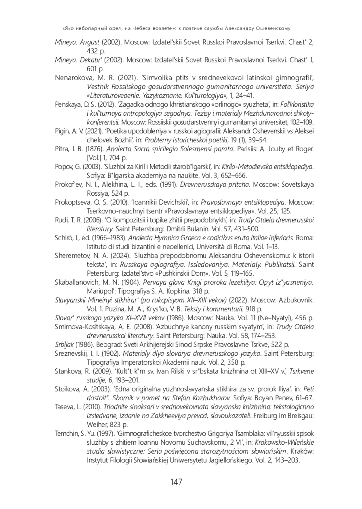 41. Шереметов Н. А. Служба преподобному Александру Ошевенскому: к истории текста // Русская агиография: Исследования. Материалы. Публикации. СПб.: Изд-во “Пушкинский Дом”, 2024. Т. 5. С. 119-165. EDN: KIZJLQ